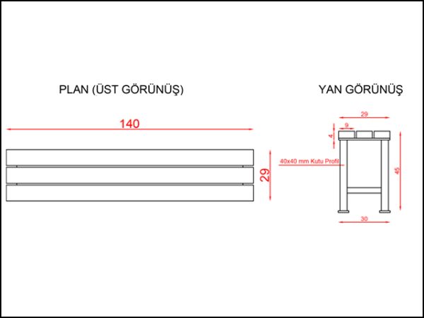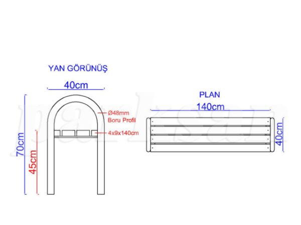70630 – Parksan Ahşap Metal Ayak Bank 140(L)x30(W)x45(H)