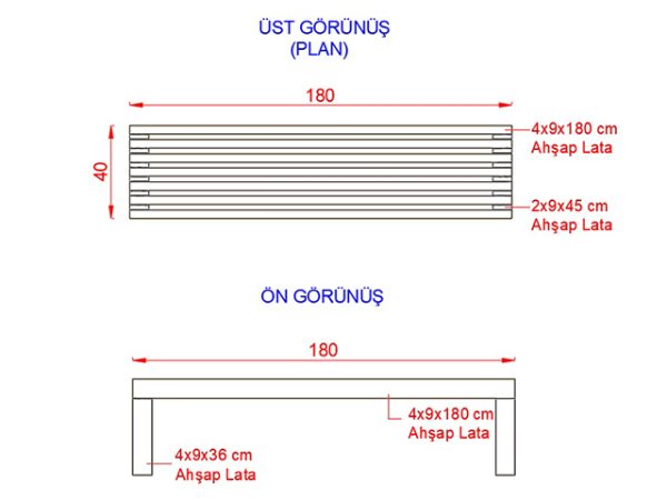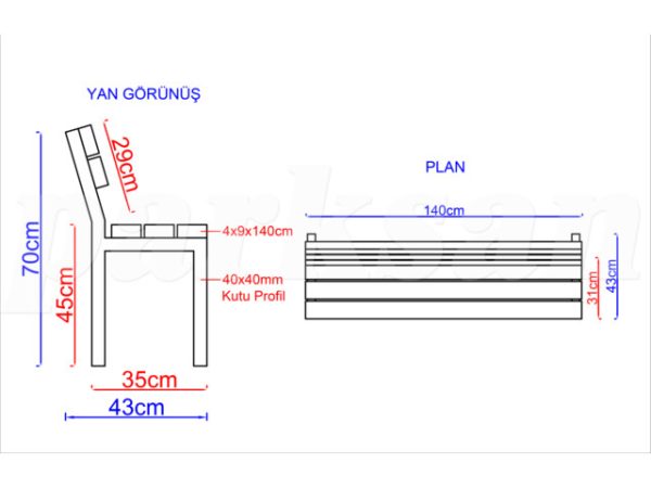 70615 Parksan Ahşap – Ahşap Bank 180(L)x45(W)x45(H)