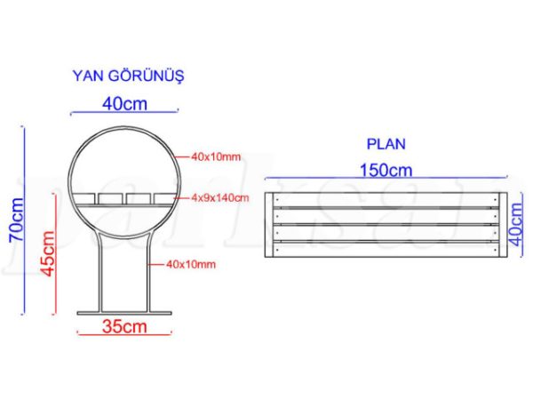 70641 Parksan Ahşap – Metal Ayak Bank 150(L)x40(W)x45(H)