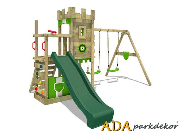 30603 Ahşap Kale Çatılı Kaydıraklı Salıncaklı Set
