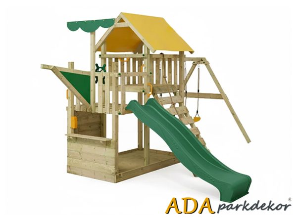 18-30685 Ahşap Çatılı Kaydıraklı Tırmanmalı Salıncak Seti
