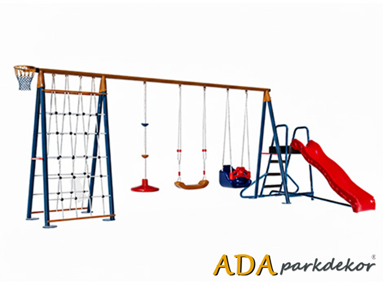 *Dört farklı aktivite: 3 salıncak, 1 kaydırak, 1 ipli tırmanma merdiveni ve 1 basketbol potası içerir.