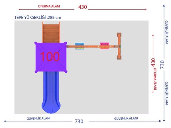 *Metal Malzeme: Merdiven korkuluğu + Kaydırak girişi + Ø 114 Kule sistemi (Elektro statik fırın toz boya)