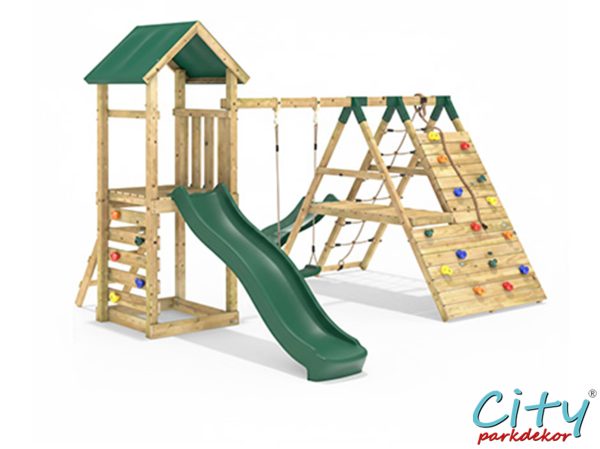 16-30621 Ahşap Çatılı Kaydıraklı Tırmanmalı Salıncak Seti