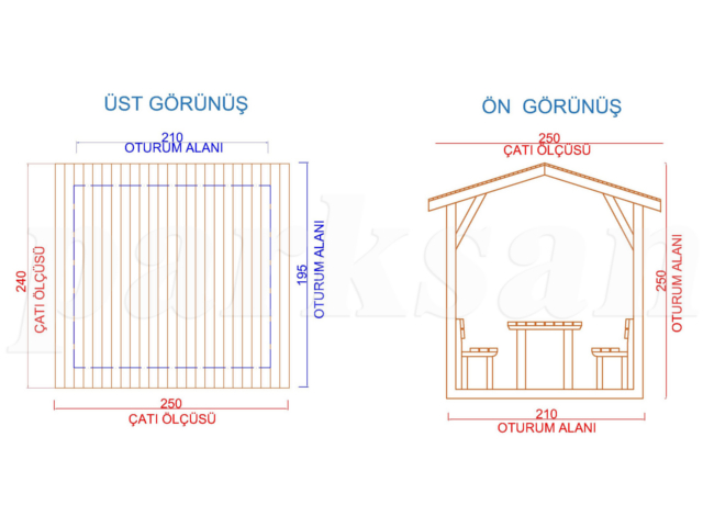 Çatılı Piknik Masası (Ahşap) 210(L)x195(W)x250(H)