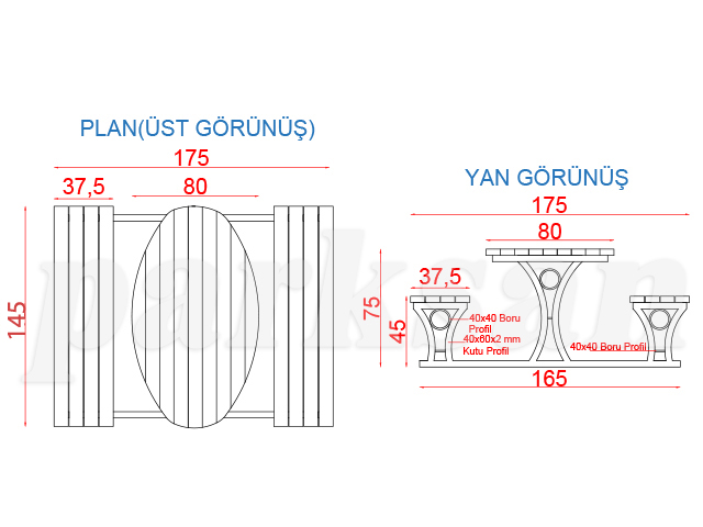 Piknik Masası (Metal Ayaklı) 145(L)x175(W)x75(H)