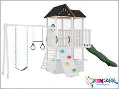 30835 – Beyaz Renkli Oyun Evli Ahşap Bahçe Salıncak Seti