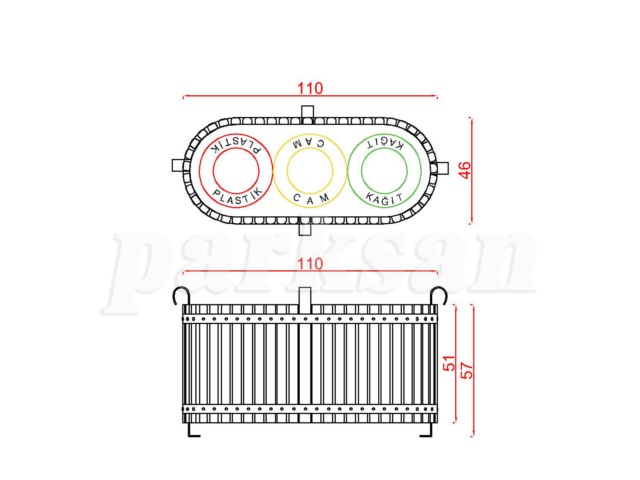 6. İç kovaların üst kısmında, 0,75 mm sacdan imal edilen ve üzerinde çöp atmak için Ø12 cm lik bir boşluk bulunan metal kapak olacaktır.