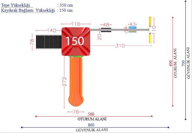 1 kaydıraklı 2 salıncaklı metal çocuk oyun parkı.