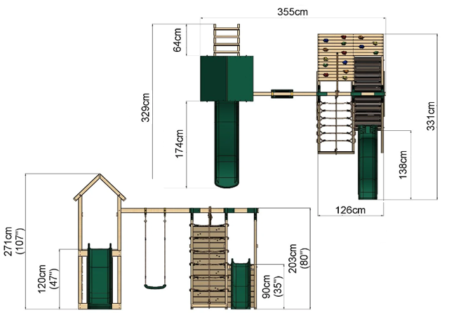 | 51312 – Ahşap Çift Kaydıraklı Tırmanmalı Salıncaklı Set |
