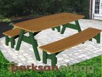 Piknik masalarında renk olarak kahverengi ve yeşil emprenye renkleri kullanılmaktadır.İsteğe bağlı olarak ahşap emprenye yerine boya da kullanılabilmektedir.