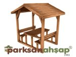 Çatılı piknik masası alt taşıyıcı; min. 90 x 90 mm elmas uçlu özel bıçaklarla motif verilmiş çam keresteden imal edilecektir. Alt taşıyıcı latalara masa lataları ve oturma bankı taşıyıcı lataları özel galvanizli vidalarla montelenecektir.