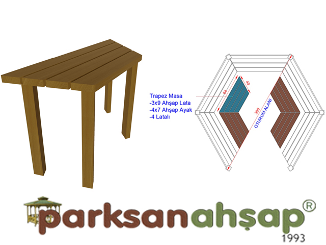 Ana Sayfa Ürünler Parksan Ahşap Ahşap Kafe - Balkon - Bahçe Masaları 70721 – Ahşap Altıgen Trapez Masa (Kamelya içi masa) – 95(L)x40(W)x75(H)