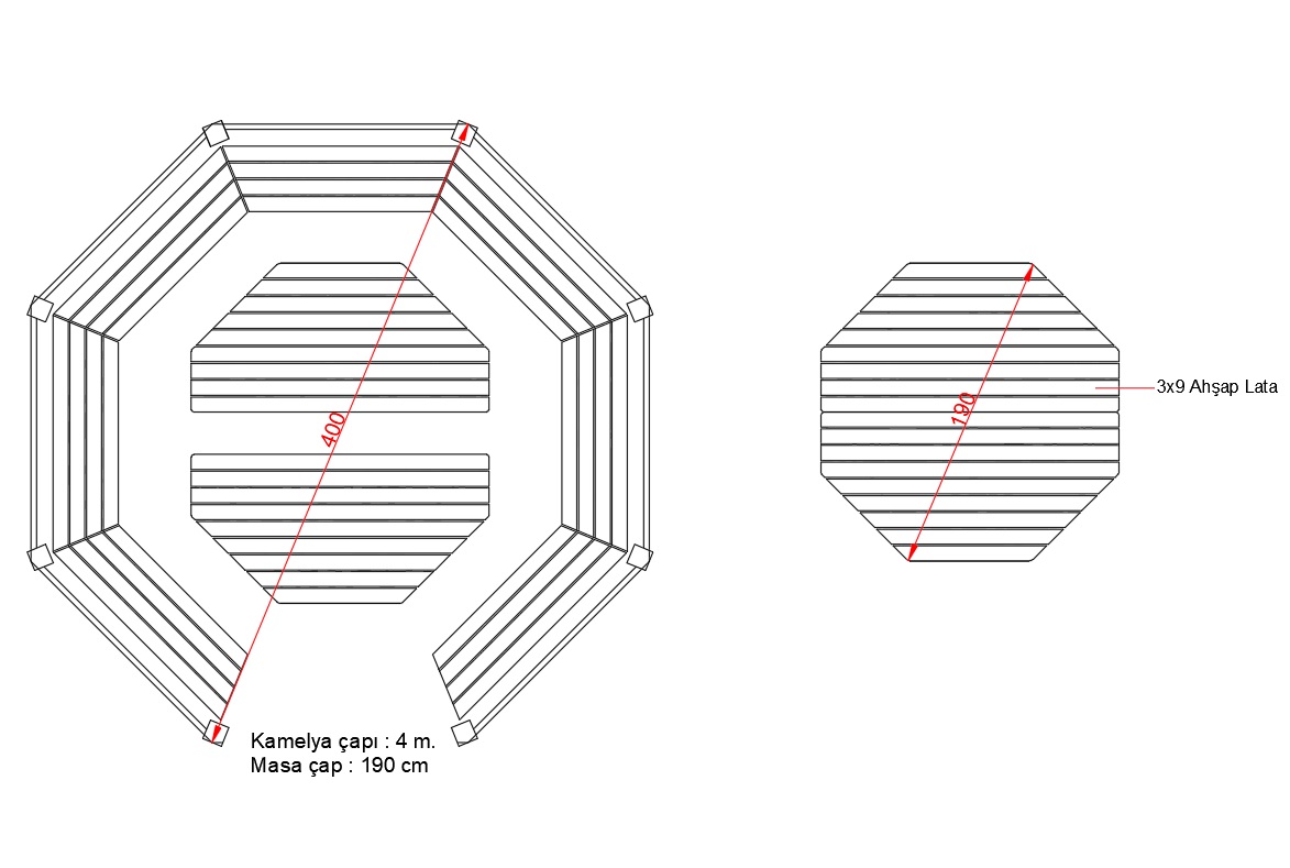 İmalat için kullanılacak ahşap hammaddesi, 1. Sınıf Sarı Çam (Pinus Silvestris) kereste olacaktır. Ahşap kesitleri, projeye uygun olarak maksimum ( ± ) 2 mm. toleransla, Ahşap boyları maksimum ( ± ) 20 mm. toleransla imal edilecektir. İmalatta kullanılacak ahşap malzemede olacak özellikler, Budak; Her metrede sağlam 4 adet budak bulunabilir. Budak çapları toplam parça genişliğinin ¼ ‘ünü geçmeyecektir. Çürük, özürlü, kısmen kaynamış ve düşmüş budaklar bulunmayacaktır. Çatlak: Halka çatlağı bulunmayacaktır. Kılcal çatlaklar bulunabilir (1-2 mm). Basınçlı emprenye ortamının getirdiği şartnamelerde uygun baş ve boy çatlakları bulunabilir, ancak tolerans sınırlarında olmalıdır. Reçine kesesi: Uzunluğu her metrede 10 cm‘yi geçmeyip 1 adet bulunabilir. Damlayan, çeken reçine bulunmayacaktır. İç kabuk bulunmayacaktır. Çürük kovuk bulunmayacaktır. Böcek deliği bulunmayacaktır. İmalat kusuru bulunmayıp sadece belirlenen toleranslar çerçevesinde sapma olabilir. Eğilme: Parça boyunun 1/50’sini geçmeyecektir. Çarpılmalar parça genişliğinin 1/100’nü geçmeyecektir. Burulma: Her metretül uzunlukta 2 mm’yi geçmeyecektir. Kılıcına eğilme: Parça boyunun 1/50 ile 1/100’ü arasında tolere edilecektir. Zımpara: Görünen yüzeylerin tamamı zımparalanarak kıymıklardan temizlenecektir.