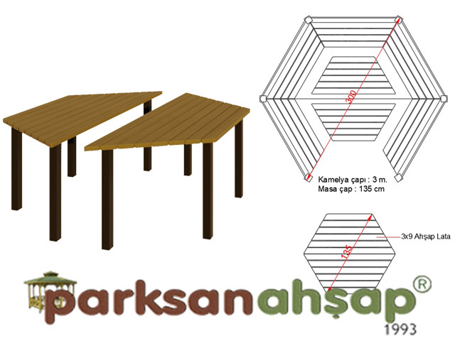 70103 – Ahşap Altıgen Gazebo 250x250X330 (L*W*H)