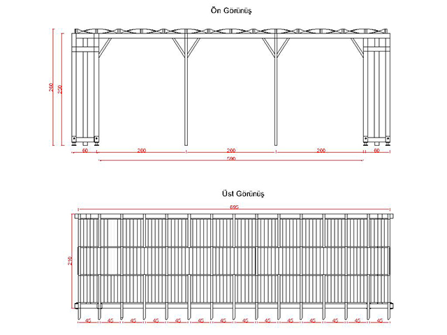 İmalat için kullanılacak ahşap hammaddesi, 1. Sınıf Sarı Çam (Pinus Silvestris) kereste olacaktır. Ahşap kesitleri, projeye uygun olarak maksimum ( ± ) 2 mm. toleransla, Ahşap boyları maksimum ( ± ) 20 mm. toleransla imal edilecektir. İmalatta kullanılacak ahşap malzemede olacak özellikler, Budak; Her metrede sağlam 4 adet budak bulunabilir. Budak çapları toplam parça genişliğinin ¼ ‘ünü geçmeyecektir. Çürük, özürlü, kısmen kaynamış ve düşmüş budaklar bulunmayacaktır. Çatlak: Halka çatlağı bulunmayacaktır. Kılcal çatlaklar bulunabilir (1-2 mm). Basınçlı emprenye ortamının getirdiği şartnamelerde uygun baş ve boy çatlakları bulunabilir, ancak tolerans sınırlarında olmalıdır. Reçine kesesi: Uzunluğu her metrede 10 cm‘yi geçmeyip 1 adet bulunabilir. Damlayan, çeken reçine bulunmayacaktır. İç kabuk bulunmayacaktır. Çürük kovuk bulunmayacaktır. Böcek deliği bulunmayacaktır. İmalat kusuru bulunmayıp sadece belirlenen toleranslar çerçevesinde sapma olabilir. Eğilme: Parça boyunun 1/50’sini geçmeyecektir. Çarpılmalar parça genişliğinin 1/100’nü geçmeyecektir. Burulma: Her metretül uzunlukta 2 mm’yi geçmeyecektir. Kılıcına eğilme: Parça boyunun 1/50 ile 1/100’ü arasında tolere edilecektir. Zımpara: Görünen yüzeylerin tamamı zımparalanarak kıymıklardan temizlenecektir.