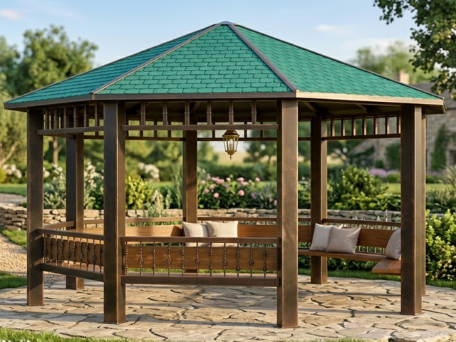 Metal Bahçe Çardak içeride kullanılan oturma birimi ve lambi çatı kaplaması dışındaki tüm malzemeler metal materyaldir.