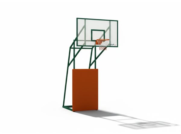 Dört direkli basketbol potasının çelik taşıyıcı gövde önünde çarpmalara ve yaralanmalara karşı koruyucu 10 cm kalınlıkta döşeme bulunmaktadır.