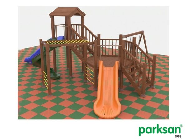 4.Kaydırağın başlangıç noktasında çocukların güvenle kaydırağa girişini sağlayacak ahşap bariyer ve kaydırak çıkışında çocuğun hızını kesecek şekilde 35 cm uzunluğunda bir düzlem bulunmaktadır.