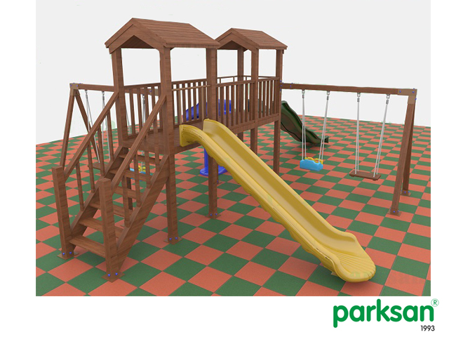 4.İki adet salıncak oturağı bulunmaktadır. Salıncak oturaklarından biri polietilen malzemeden üretilmiş olup, üç tarafı kapalıdır ve emniyet için ön koruması bulunmaktadır. Diğerinde ise koruma bulunmamaktadır ve kauçuk malzemeden imal edilmiştir.