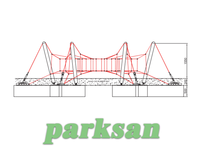 TIRMANMA İPLERİ: 16 mm çapında, UV korumalı ve yangın geciktirici çözümlü poliamid( naylon) halat kablo olacaktır. Her bir halat, bir poliamid manşon içinde her biri 24 çelik takviye halatı içeren, toplam 144 çelik takviye halatı için sağlam bir çekirdek etrafına sarılmış 6 halattan oluşur; kablonun her bir ucunda, bitmiş alüminyum manşonla kabloya tutturulmuş ve galvanizli çelik aşınma çubuğuyla kaplanmış bir bağlantı halkası bulunur. Kenar halatları, toplam 168 çelik takviye teli için poliamid çekirdek yerine sarılmış çelik kablolardan oluşan sağlam bir çekirdek içerecektir.