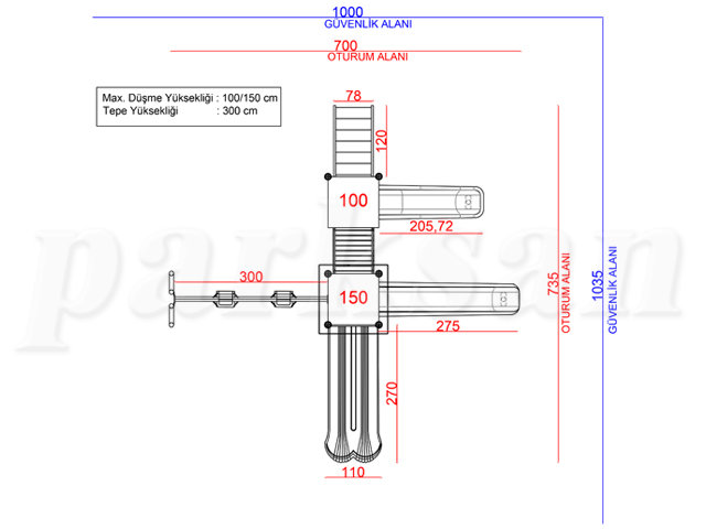 Güvenlik Ölçüleri (Safety Area) : 1000×1035 cm